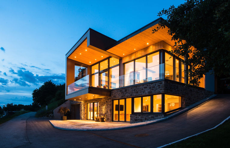 Ein Passivhaus ersetzt die leerstehende Peitn Keusche am Längsee. Die Materialien Holz und Naturstein wurden bewusst wieder verwendet, um zwei seperat nutzbare Wohneinheiten zu schaffen. Auf dem Natursteinsockel liegt quer zum See gerichetet das "Fernrohr". Die große Glasfront mit davor liegender Terrasse fokusiert dabei den Blick auf die malerische Landschaft um den Längsee. Das Gebäude ist als Passivhaus ausgeführt und entspricht den neuesten Anforderungen hinsichtlich Energieeffizienz.